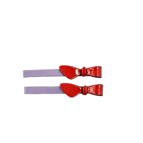 Cassandra Two Tone Lilac and Red Bow Clips- Regular price
