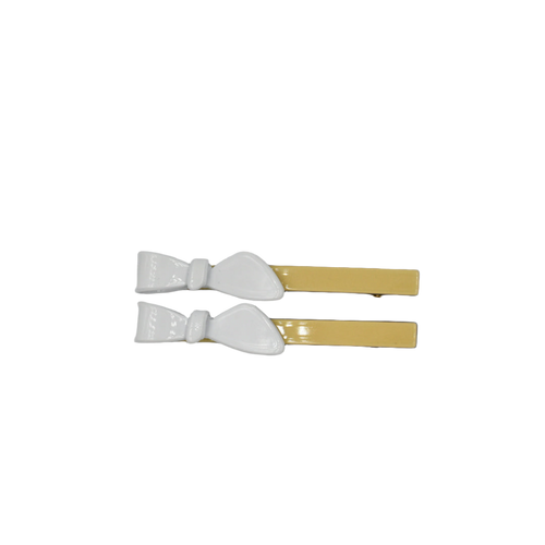 Cassandra Two Tone Lemon and Beige Bow Clips- Regular price