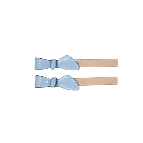 Cassandra Two Tone Beige and Blue Bow Clips- Regular price