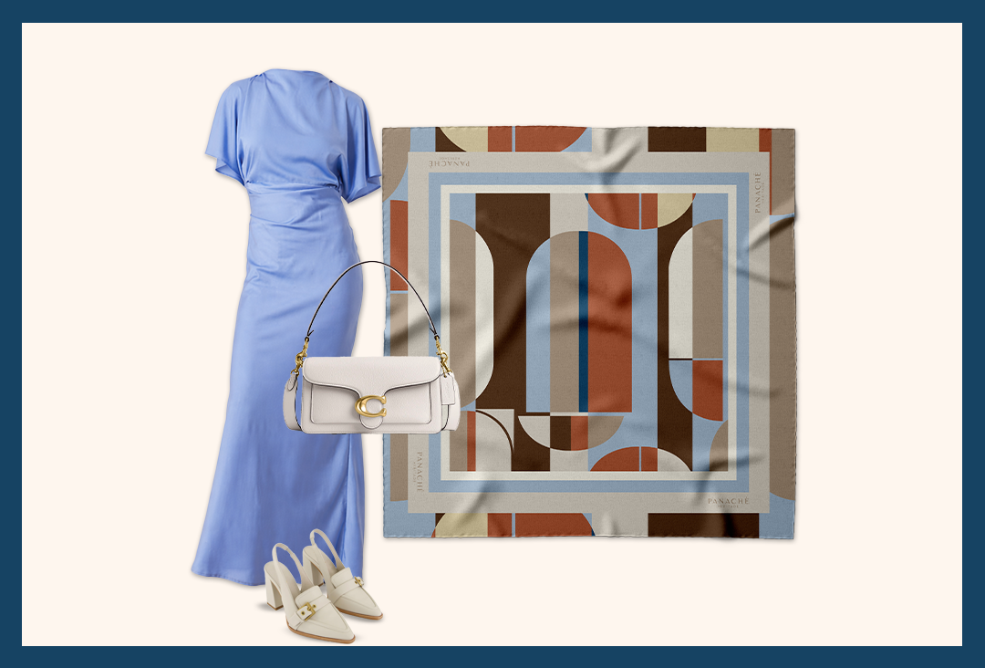Expertly crafted from 90 x 90 16mm silk twill, the Metro in Blues scarf features a stunning combination of blue, beige cream, and rust hues. Its handrolled hem adds a touch of elegance to this versatile accessory. Perfect for adding a pop of color to any outfit.