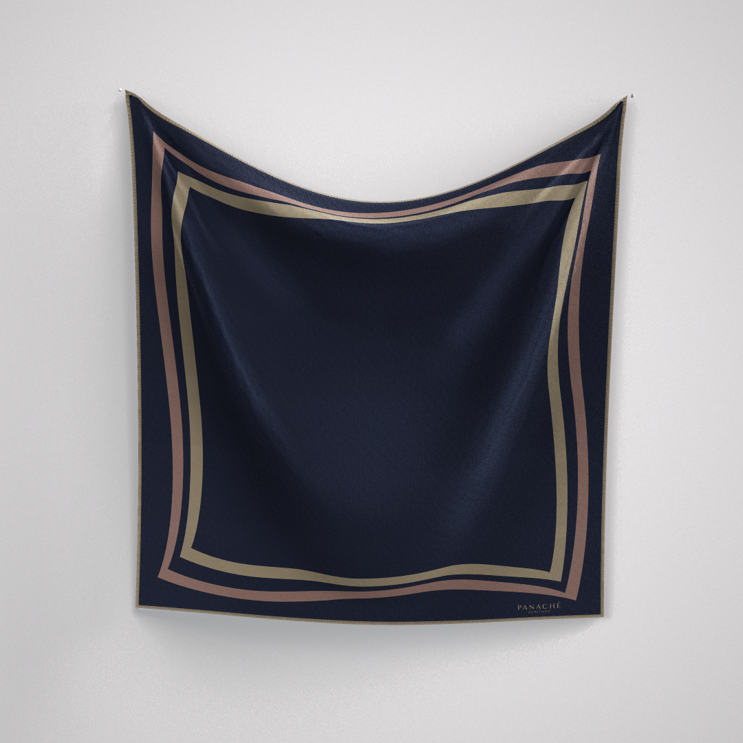 The Classique Navy with Tan is crafted from 16mm silk twill, offering a luxurious feel and durability. Its 90 x 90 cm dimensions make it versatile for various styling options, while the meticulously hand-rolled hems add a refined finish. This scarf combines elegance with practical wearability.