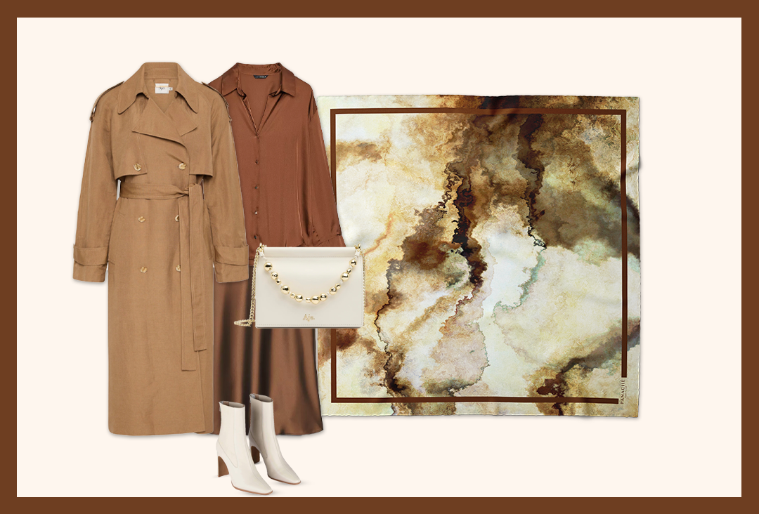 Elevate your style with our Classic Marble in Browns scarf. Made from 16mm silk twilly, the warm brown tones will add a touch of elegance to any outfit. Measuring 90x90, its hand-rolled hems give it a luxurious feel. Elevate your style today with this must-have accessory.